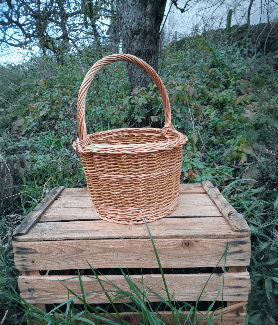 Wir flechten innerhalb von 2 Tagen einen kleinen Henkelkorb mit allen klassischen Bestandteilen.