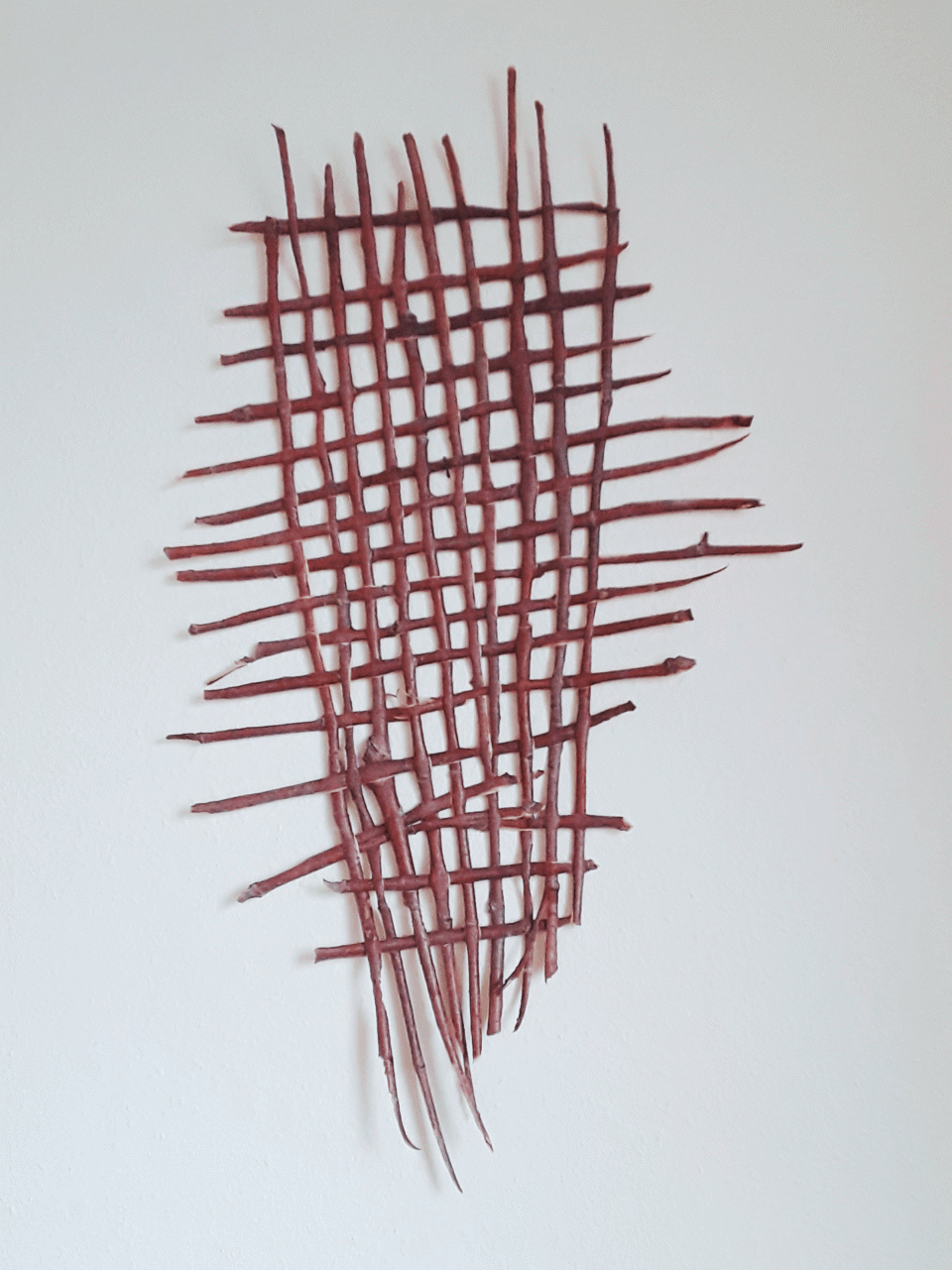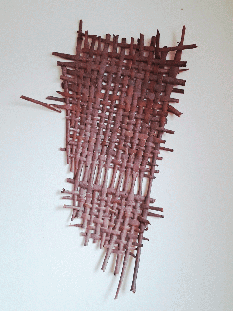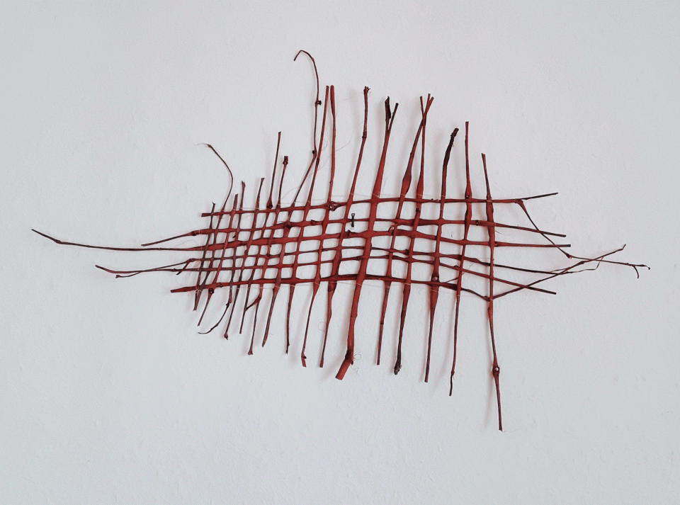 Wir schälen mehrjährige Weiden. Ziehen die Rinde in Streifen ab. Mit den Streifen gestalten wir mittels Webgeflecht ein Bild für die Wand.