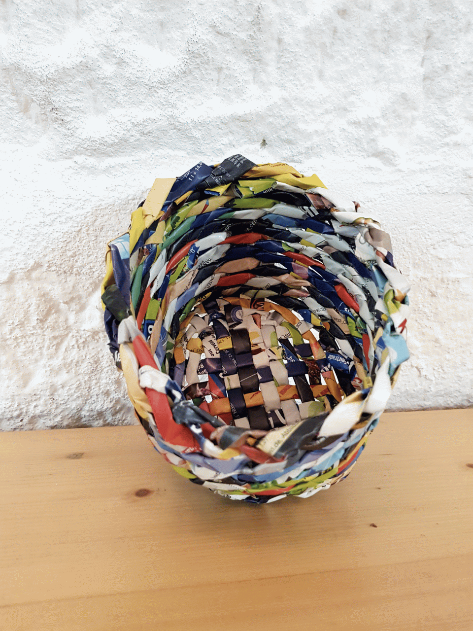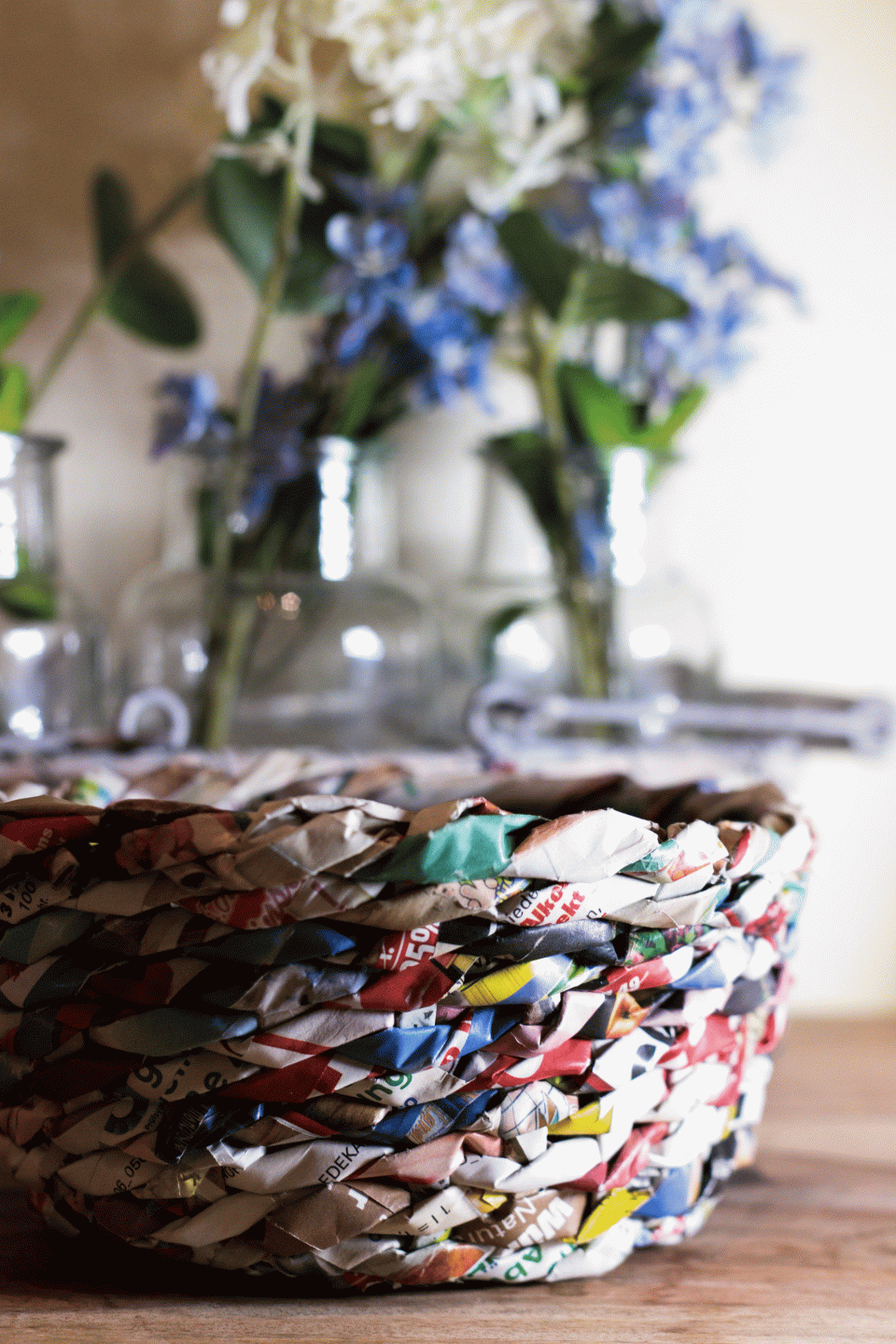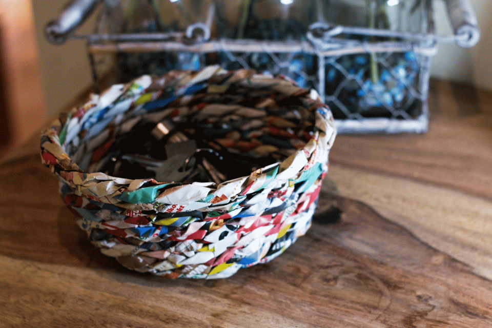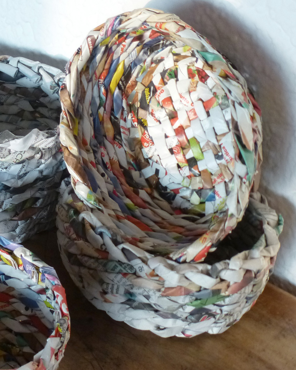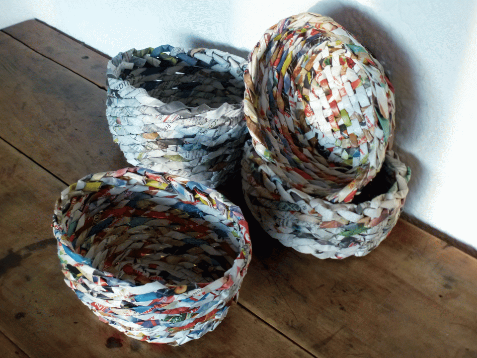 Statt alte Zeitungen wegzuwerfen, lassen wir sie zu kleinen Krimskramskörbchen werden. Zunächst stellen wir unser Flechtmaterial her und flechten damit ein rundes oder ovales Körbchen.