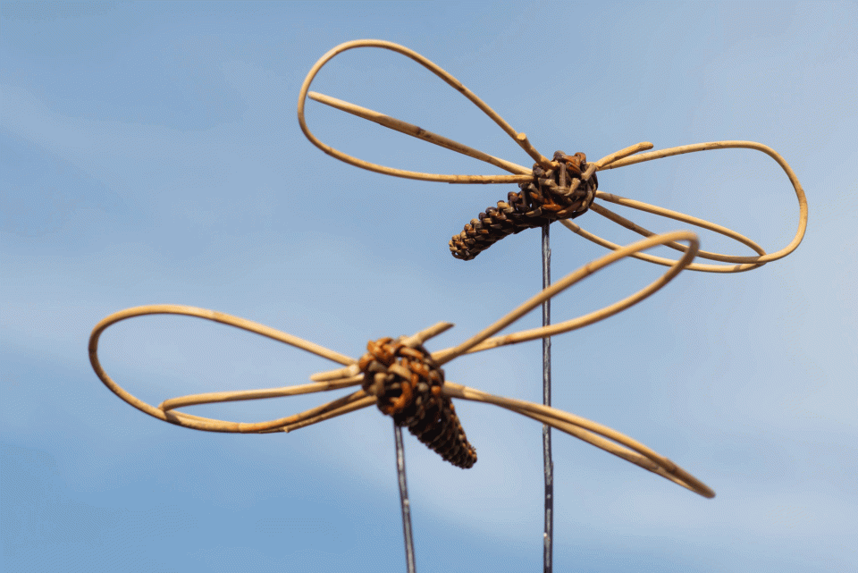 Mit ungeschälten Weiden flechten Erwachsene und Teenies den Bienenkörper in der Rasseltechnik.