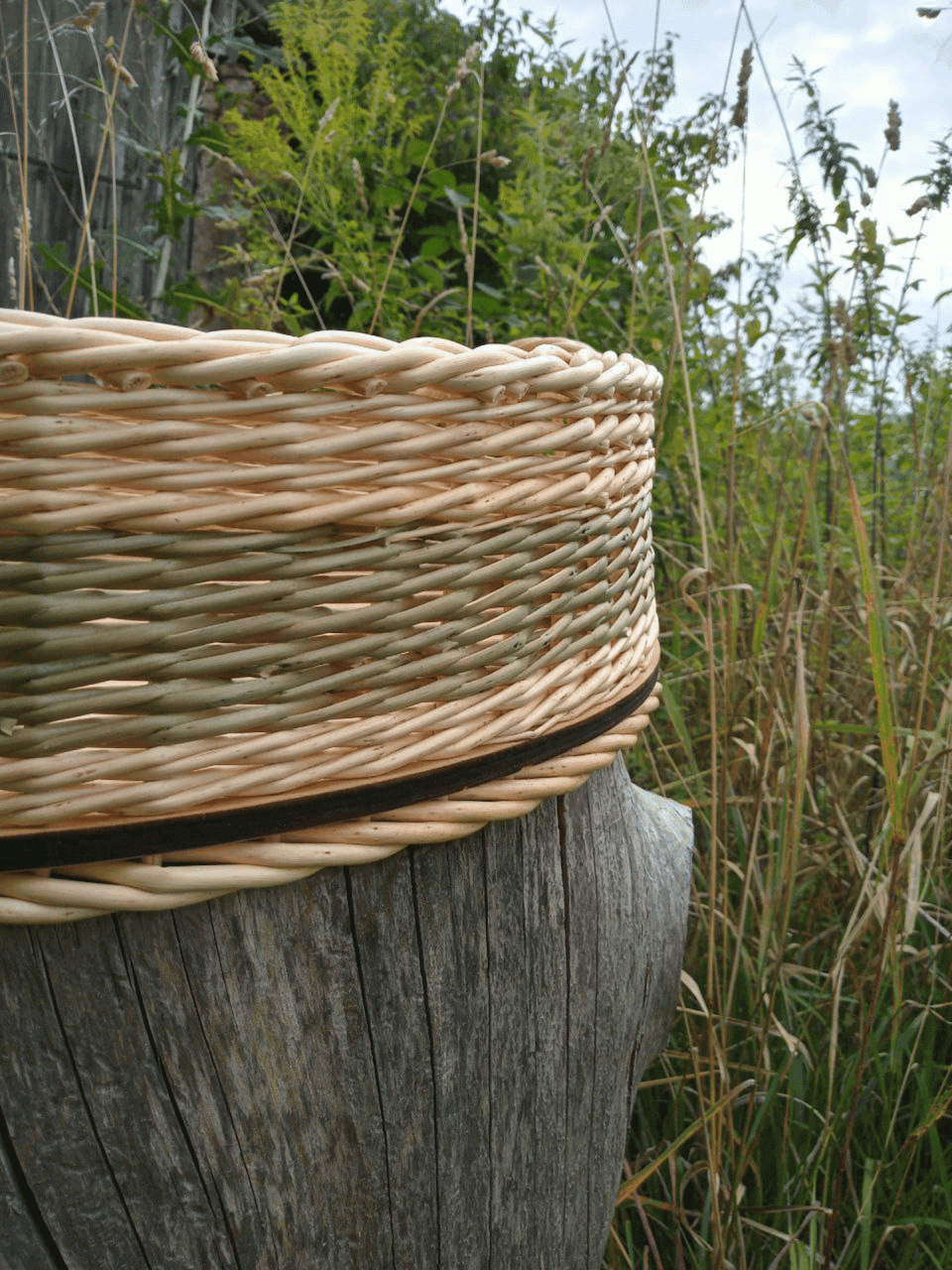 In diesem Kurs flechten wir ein Tablett aus weißer Weide auf einer geölten Holzplatte (⌀ 450 mm). Außerdem könnt ihr das Arbeiten mit Schienen kennenlernen, wie man sie aus der Feinflechterei kennt. Ihr könnt euer Tablett individuell mit unterschiedlich gefärbten Weidenschienen flechten.