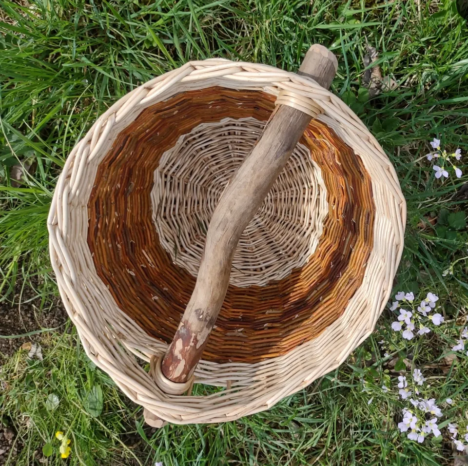 In diesem Kurs flechten wir einen runden, vielseitig einsetzbaren Korb aus ungeschälten Weiden. Als Henkel arbeiten wir einen Ast in das Flechtwerk ein. Vom Boden bis zum Zuschlag erlernen/ vertiefen wir die einzelnen Schritte der Entstehung eines Weidenkörbchens.